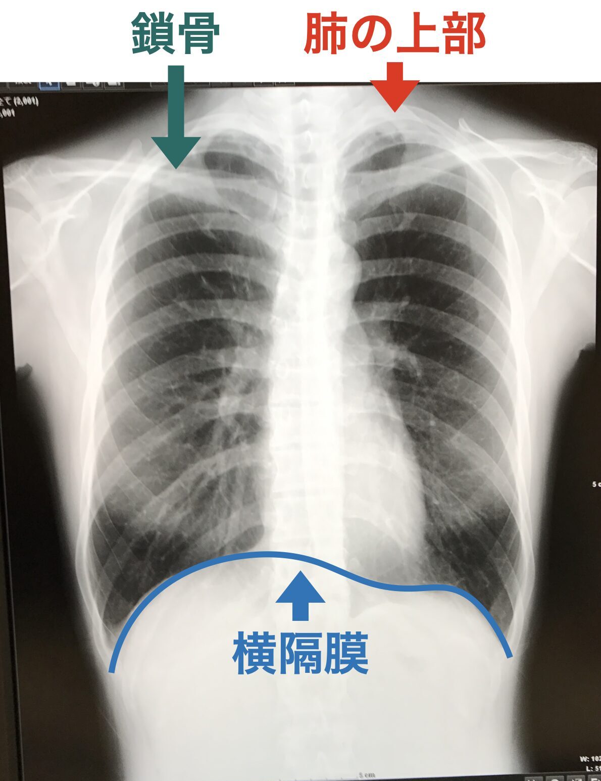 クラリネット奏者である筆者(有吉尚子)が健康診断で撮ったレントゲン写真が分かりやすかったので公開します。